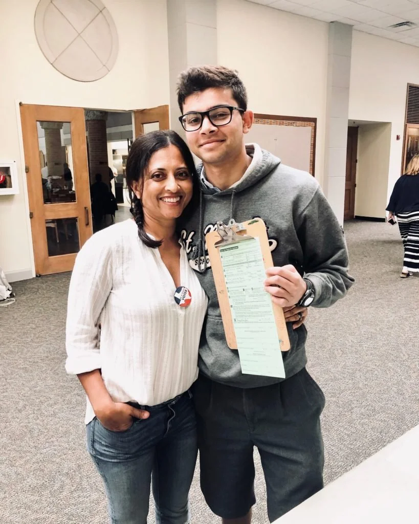 Ismaili activists Kamini and Kamal Mamdani register students and faculty at St. Marks School to vote in Dallas, Texas in March 2019. (Photo courtesy Zahra Kassam Mamdani)