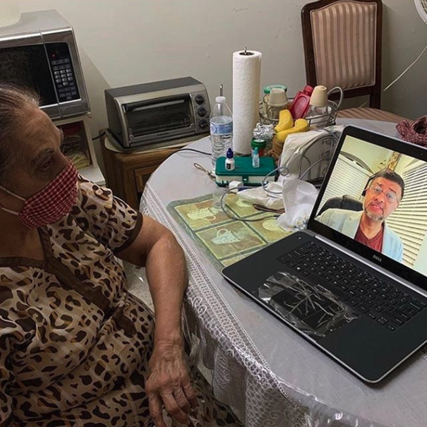 Ismailis Rise Up member Shakeel Huda’s grandmother views an electoral organizing training video. (Photo courtesy Ismailis Rise Up)
