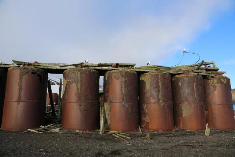 Amongst the remnants of this settlement, Swan and I talk about what occurred here. He tells me how the whales were harvested for their blubber, which was removed and boiled down in a rendering plant. In the pre-electricity era, whale oil was the western world’s primary lamp fuel. On Deception, oil was stored in huge tanks that dot the settlement, and eventually shipped off to light homes in London and Oslo and Santiago. The tanks look like gigantic steel oil drums. Swan and I peek in. They still reek of whale oil to this day; a musty, metallic, almost rancid smell. The only other parts of the whale used were the bones, which provided structure for women’s corsets.