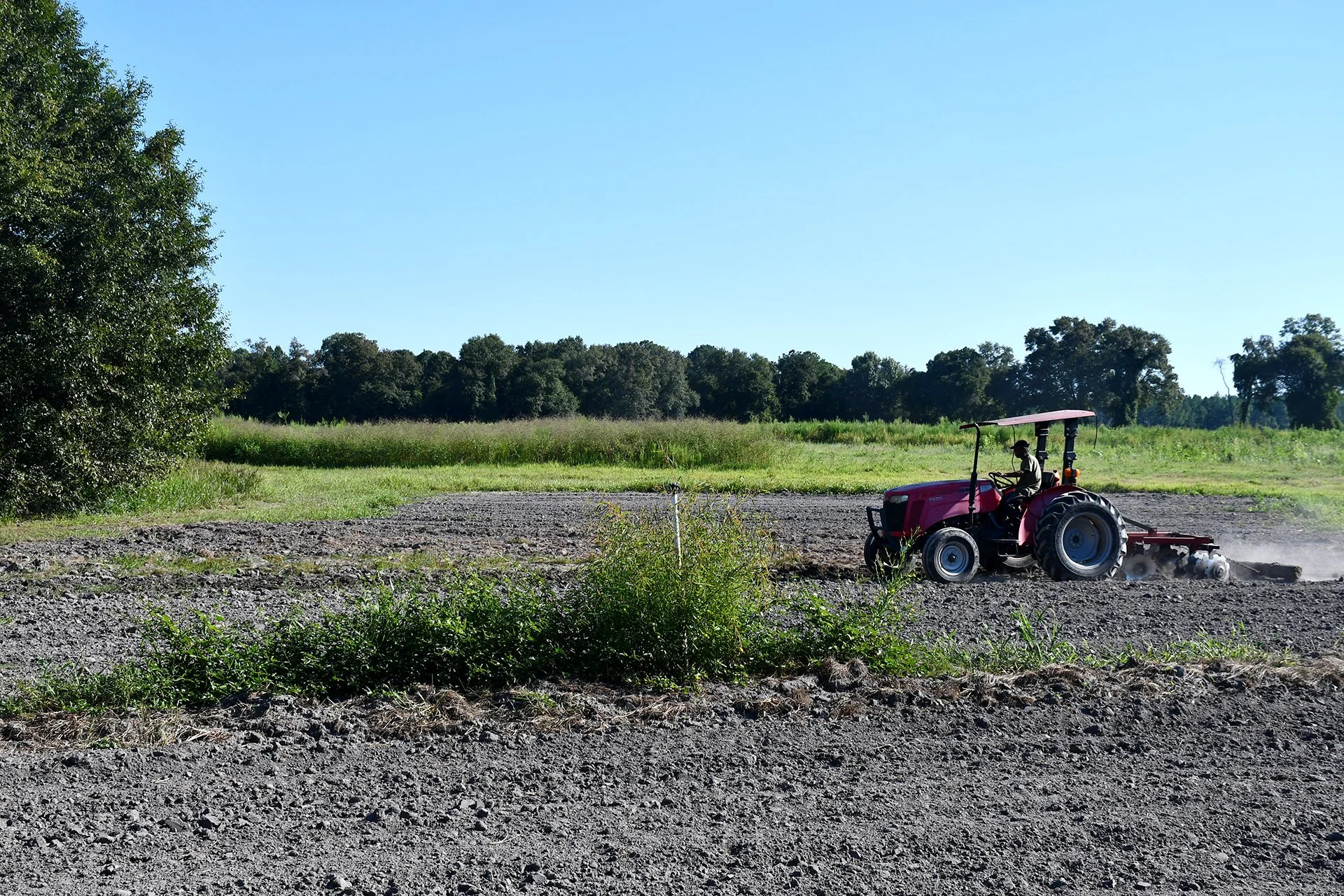 Lawton Wilburn, Emma Wilburn’s husband, clears his field to prepare to plant seeds for collard greens in Worth County. He spent the morning picking the last of his green peas. Photo by Lucille Lannigan / Albany Herald