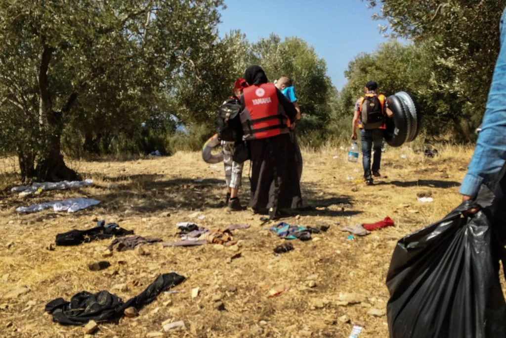 Babakale, Turkey. August 30, 2015. A group of 36 refugees was led by a smuggler through an olive grove to the shore to a small inflatable boat.