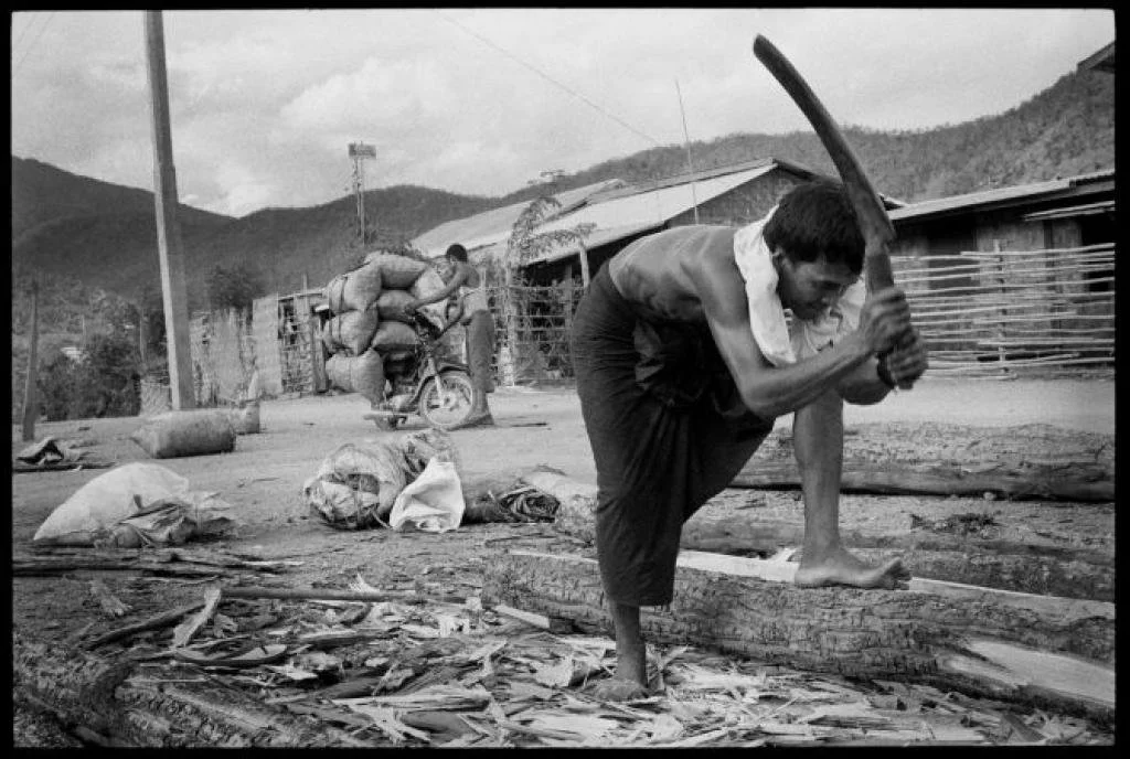 “The old village had 177 households,” says a thin, cautious man wearing the traditional Burmese longyi, a colorful, ankle-length cloth bound around the waist. As we speak a uniformed Burmese soldier stops outside the courtyard where we are standing. He eyes us suspiciously, but moves on. More villagers gather around us, but when asked their names they stare at the ground nervously and remain silent.