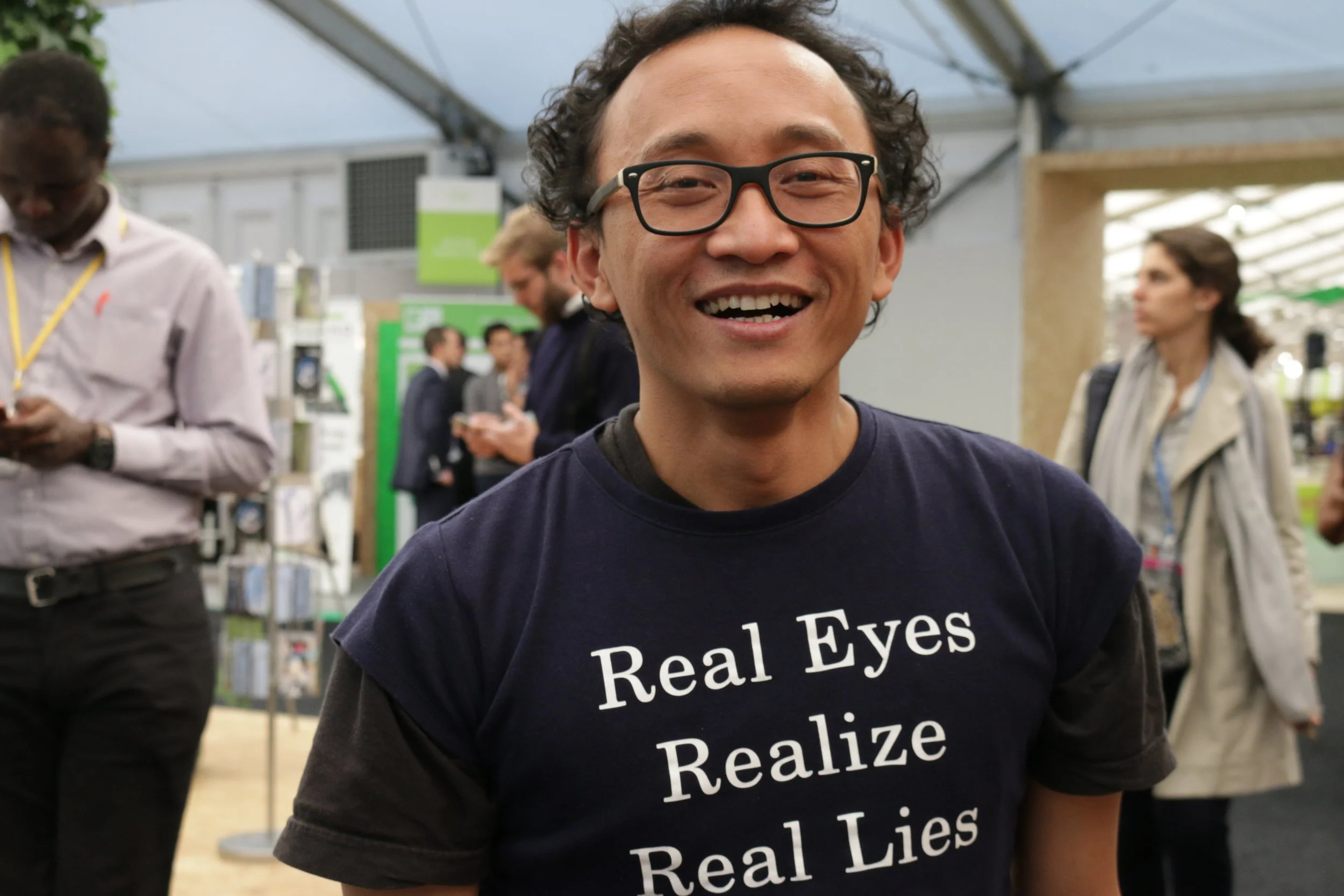 Irendra Radjawali presents his work at the Indigenous Pavilion at COP21 in Le Bourget, Paris earlier this month. Radjawali founded the Swandiri Institute, an organization that works with indigenous communities to gather and analyze data using drones.