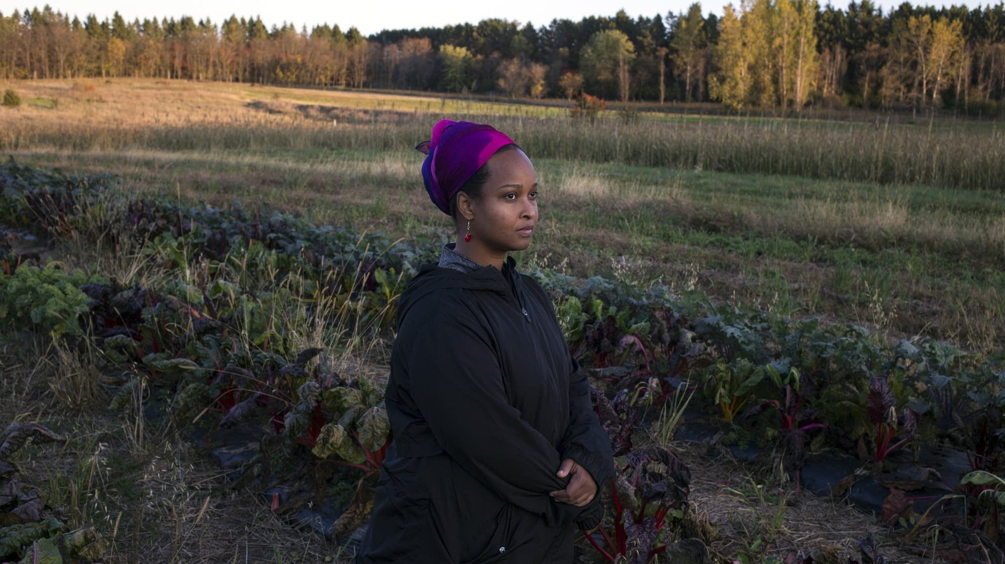 Naima Dhore, 33, stands on her parcel of an incubator farm in Marine on St. Croix, Minn., on Friday, October 13, 2017. (Photo by Brittany Greeson)