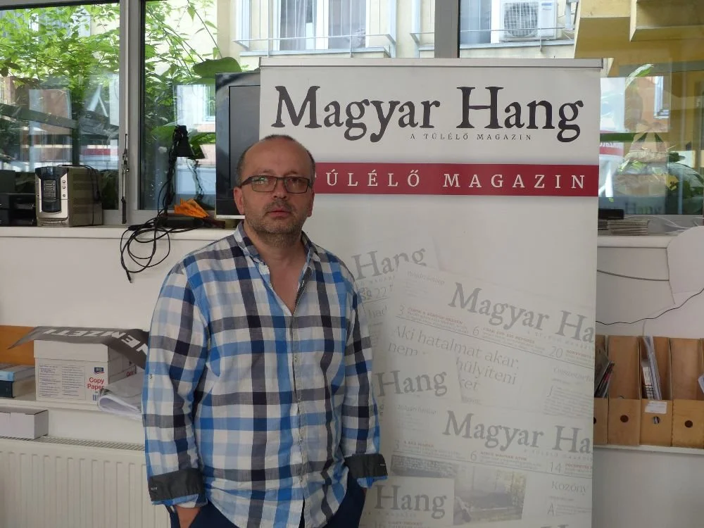 Lukács Csaba, editor of the Magyar Hang, one of Hungary’s few independent media outlets. (Photo by Quentin Ariès/GroundTruth)