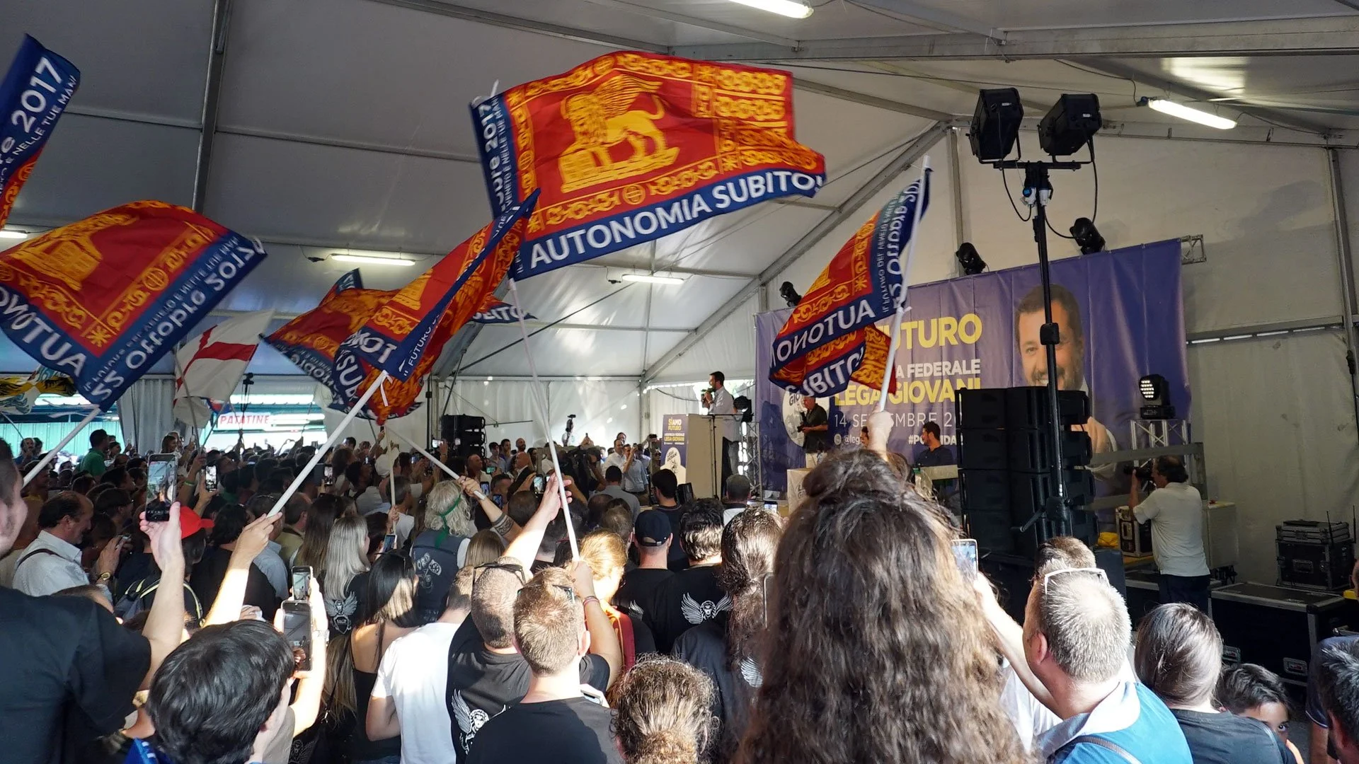 But Toccalini showed talents of his own. As he took over as the head for the League’s youth arm, the crowd began chanting, “Luca is one of us!” Salvini then gave him a tight hug, enshrining him as the next in line. As if to pay tribute, Toccalini grabbed the microphone. “Long live the League!” he yelled. “Long live Matteo Salvini!”