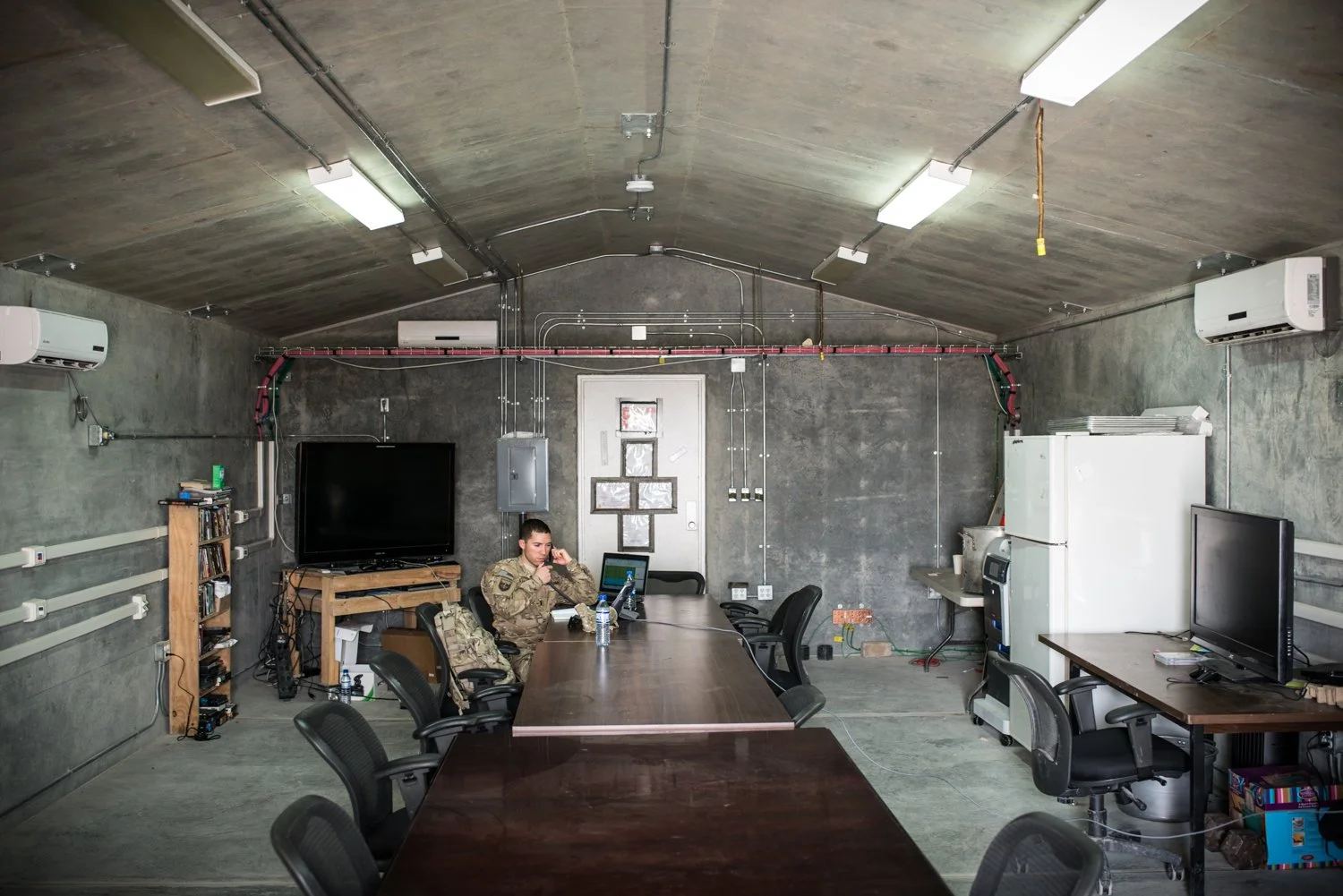 A bunker-like meeting room at Bagram. All the army’s plywood buildings are being torn down – only buildings that can withstand rocket attacks will remain on US bases after 2014. (Photo by Ben Brody)