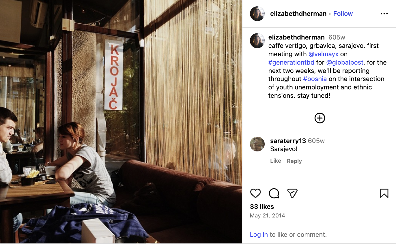 Instagram Caption: caffe vertigo, grbavica, sarajevo. first meeting with @velmayx on #generationtbd for @globalpost. for the next two weeks, we'll be reporting throughout #bosnia on the intersection of youth unemployment and ethnic tensions. stay tuned!