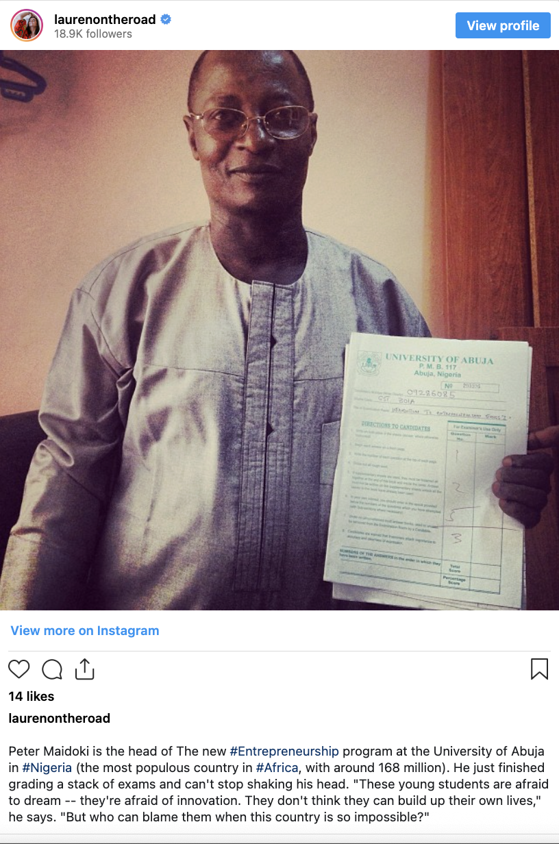 At the University of Abuja, the city’s largest federal university, students stand around listlessly, many bereft of plans for life after graduation. On most days, Peter Maidoki, the director of the university’s entrepreneurship program, sits in his dark office grading papers for his Entrepreneurship 101 course.