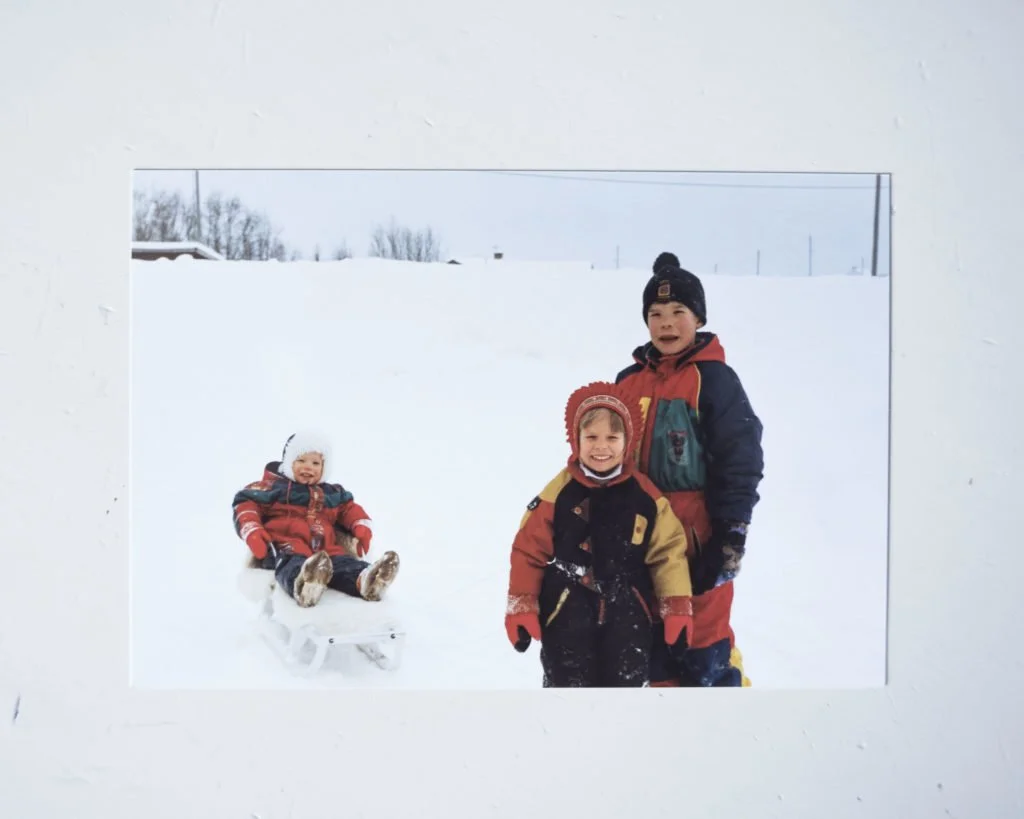 Childhood memories from the Marainen family album. Heaika (left), Sire (middle) and Gusto (right) out playing in the snow during winter.