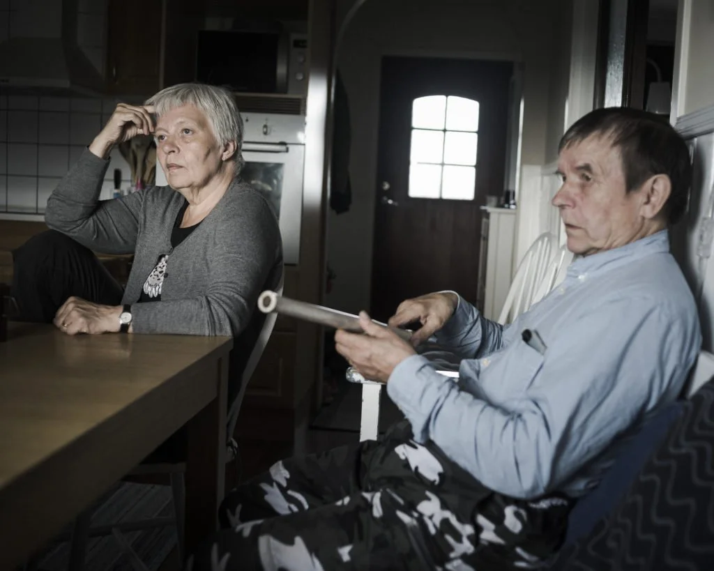 Randi and Thomas Marainen sit in their kitchen in Nedre Soppero, Sweden.