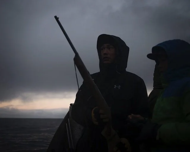 In the Arctic, annual sea ice began forming later and sometimes not at all; then multi-year ice began melting in the middle of winter. The surfaces upon which hunters travel have become more treacherous and difficult to assess; often the ice looks solid from above, but has melted from below. Unpredictable and severe storms crop up suddenly while hunters are out on the land, leaving even the most experienced hunters stranded for days—and some don’t make it.