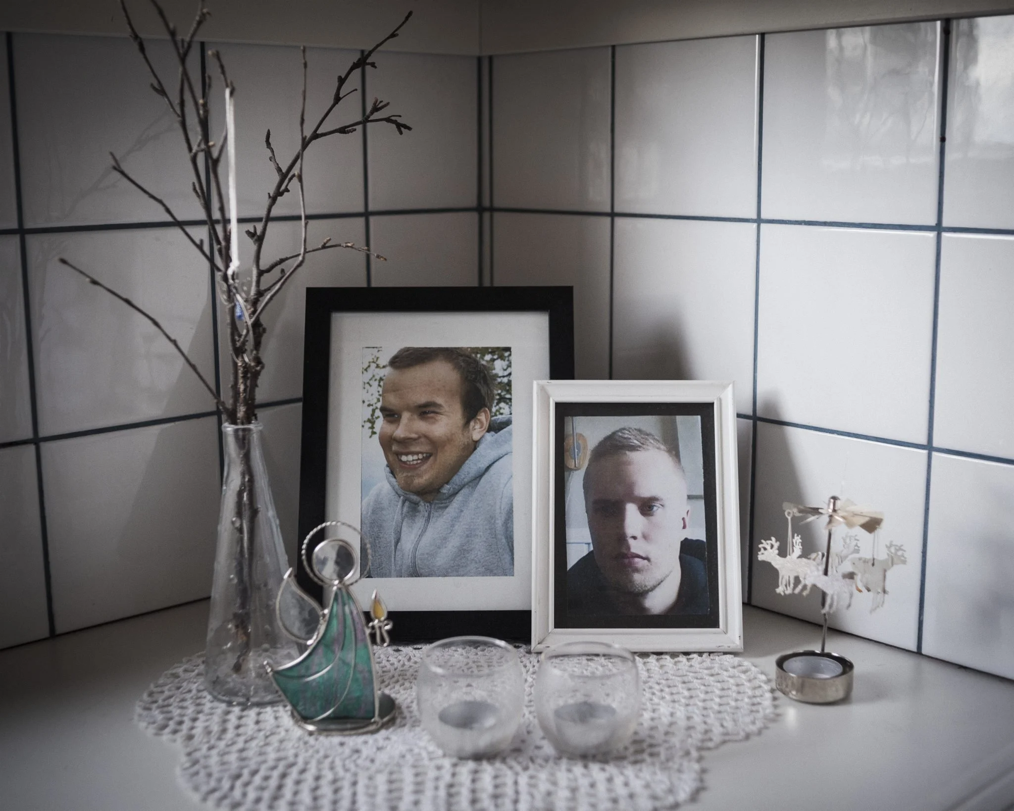 Framed photos of Gustu and Heaika Marainen sit on their parents’ kitchen counter, flanked by candles and tiny silver reindeer figurines. The brothers committed suicide within months of one another in 2014.