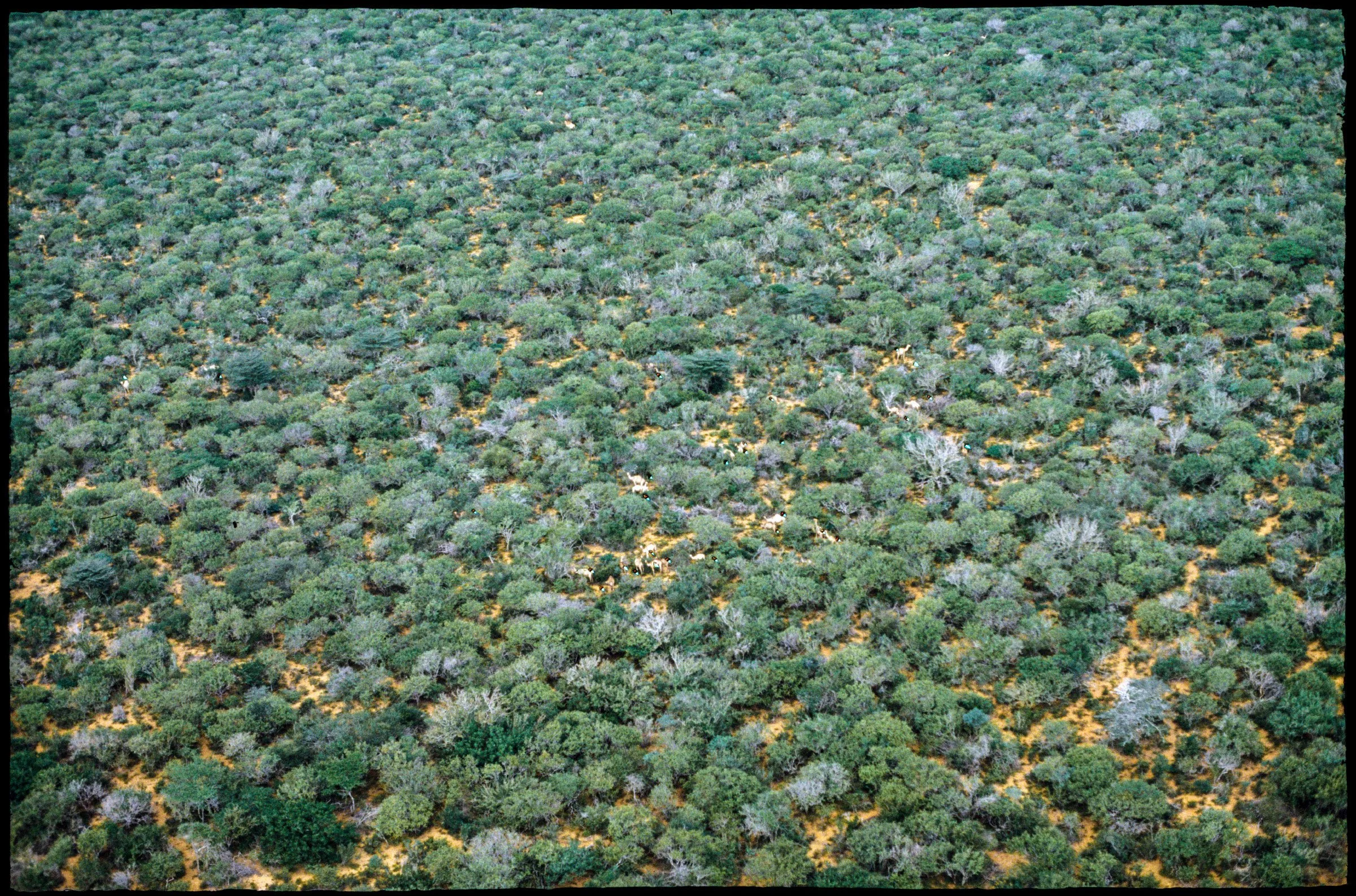 An aerial view of camels feeding on lush, green foliage, as photographed by a member of Dr. Watson’s team in the late 1970s to early 1980s. (Courtesy of Resource Management and Research)