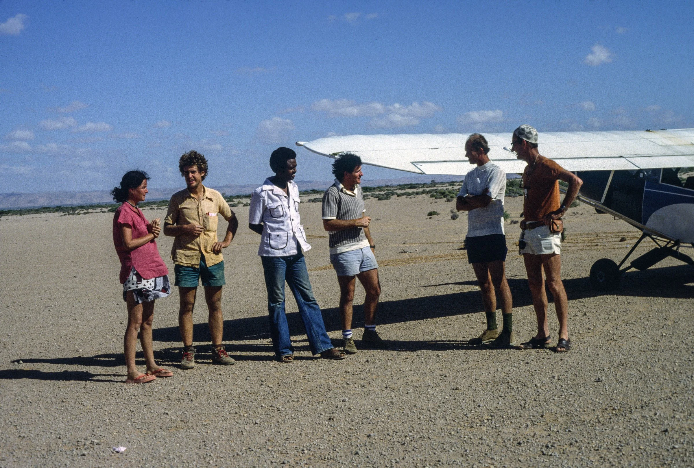Watson and his researchers stand on a tarmac in Somalia. Archival Photo. (Courtesy of Resource Management and Research)