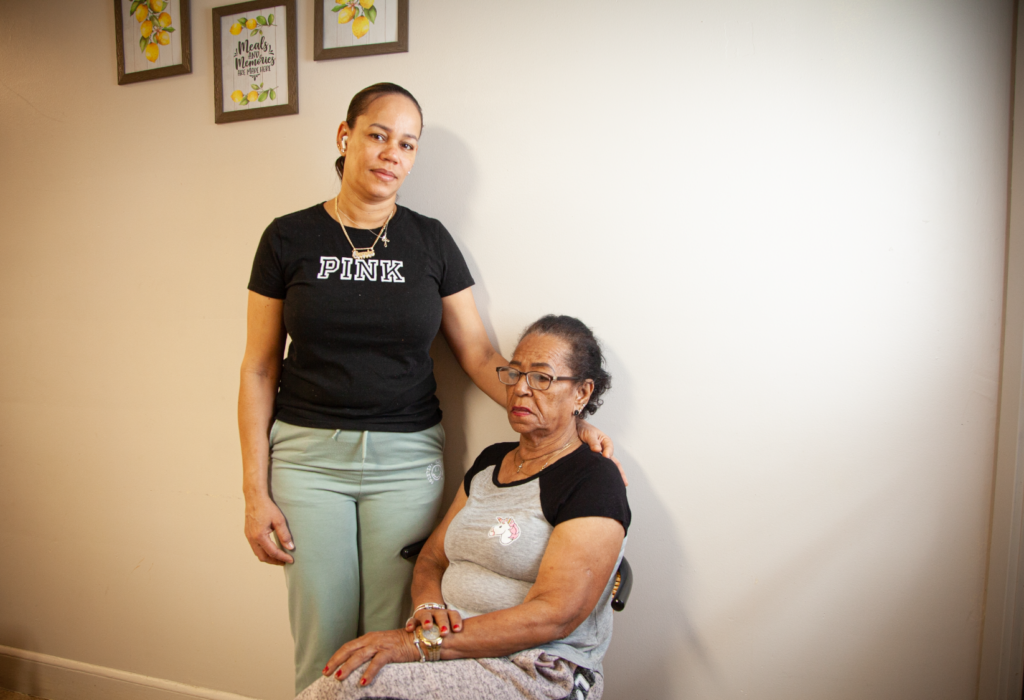 Flerida Moriel and her daughter, Mirla Cabrera came to the United States from the Dominican Republic. Cabrera works long hours and would like to find community and services for her 79-year-old mother, but the language barrier holds them back. (Photo by Gabriela Lozada/NHRP)