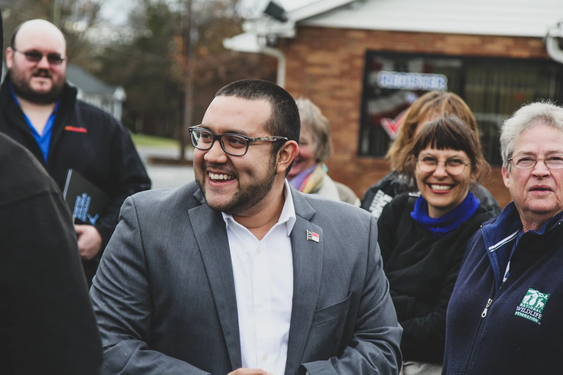 Ricky Hurtado outside the Alamance County Board of Elections building after filing as a candidate (Photo by Andie Rea/Ricky Hurtado for NC House)