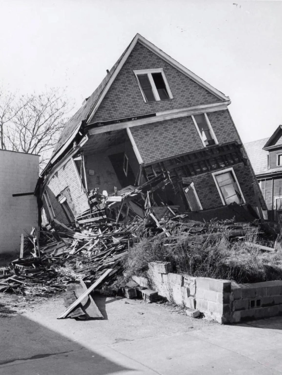 Photograph of demolition of a house that was located at 280 West Exchange Street in Akron in 1969. The house was demolished to make way for the Innerbelt. (Akron Beacon Journal File Photo)