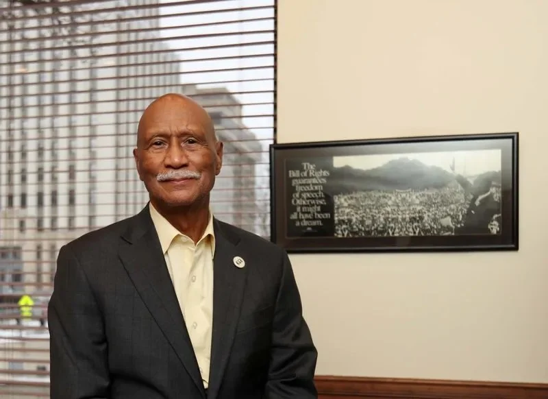 Tom Fuller is the former executive director of Alpha Phi Alpha Homes. In the 1970s, he worked as a social worker in the city’s relocation office, helping displaced families find new homes while the Akron Innerbelt was being constructed (Photo by Karen Schiely/Akron Beacon Journal)