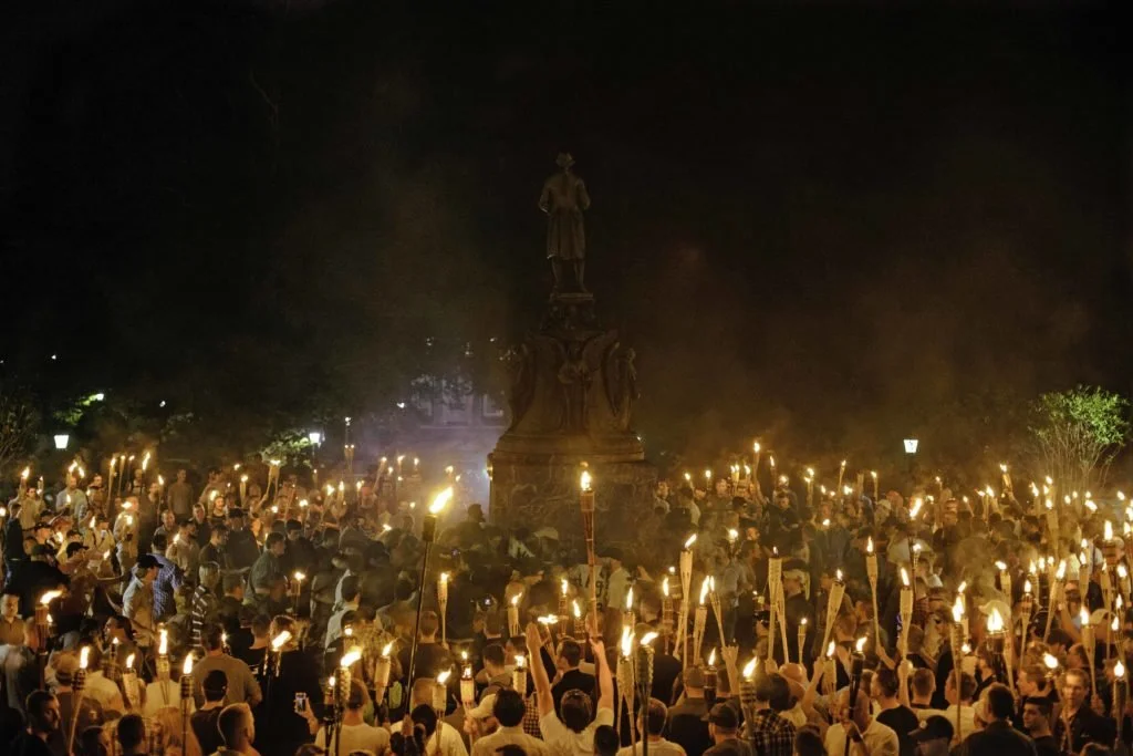 The UVA campus was partially designed by Thomas Jefferson. It has wide green spaces and white-columned buildings, giving the campus the feel of a Southern plantation. It made the hundreds of white men carrying torches all the more grotesque. These men were taking to the streets to demand what they thought was theirs.