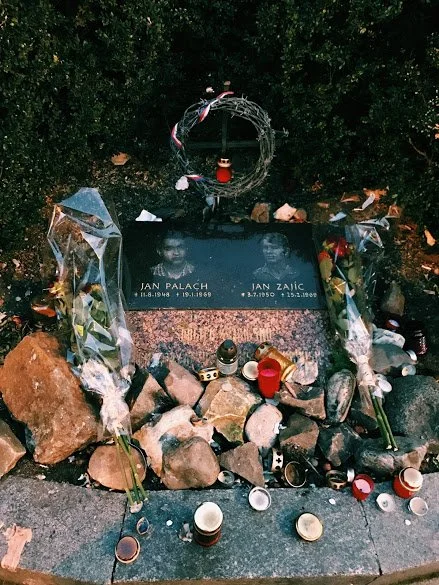 A memorial sits in Wenceslas Square commemorating students Jan Palach and Jan Zajic. Both men committed suicide by self-immolation as a political protest against the communist regime. (Photo by Karolina Chorvath/GroundTruth)