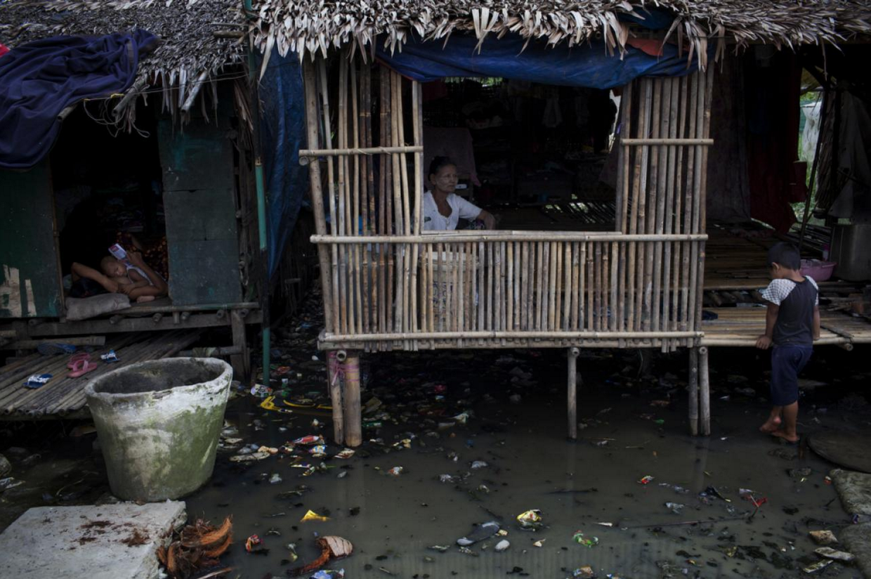 Her community is a long ribbon of bamboo homes, each stacked on stilts above a shallow, sludgy green-brown swamp. The stagnant water below is a playground for bacteria, scattered with trash and the occasional dead animal. Nyo Ma and her neighbors filter well water through a cloth sleeve, a method that does not kill bacteria or viruses. Toilets are outhouses with pipes that lead into the swamp below.