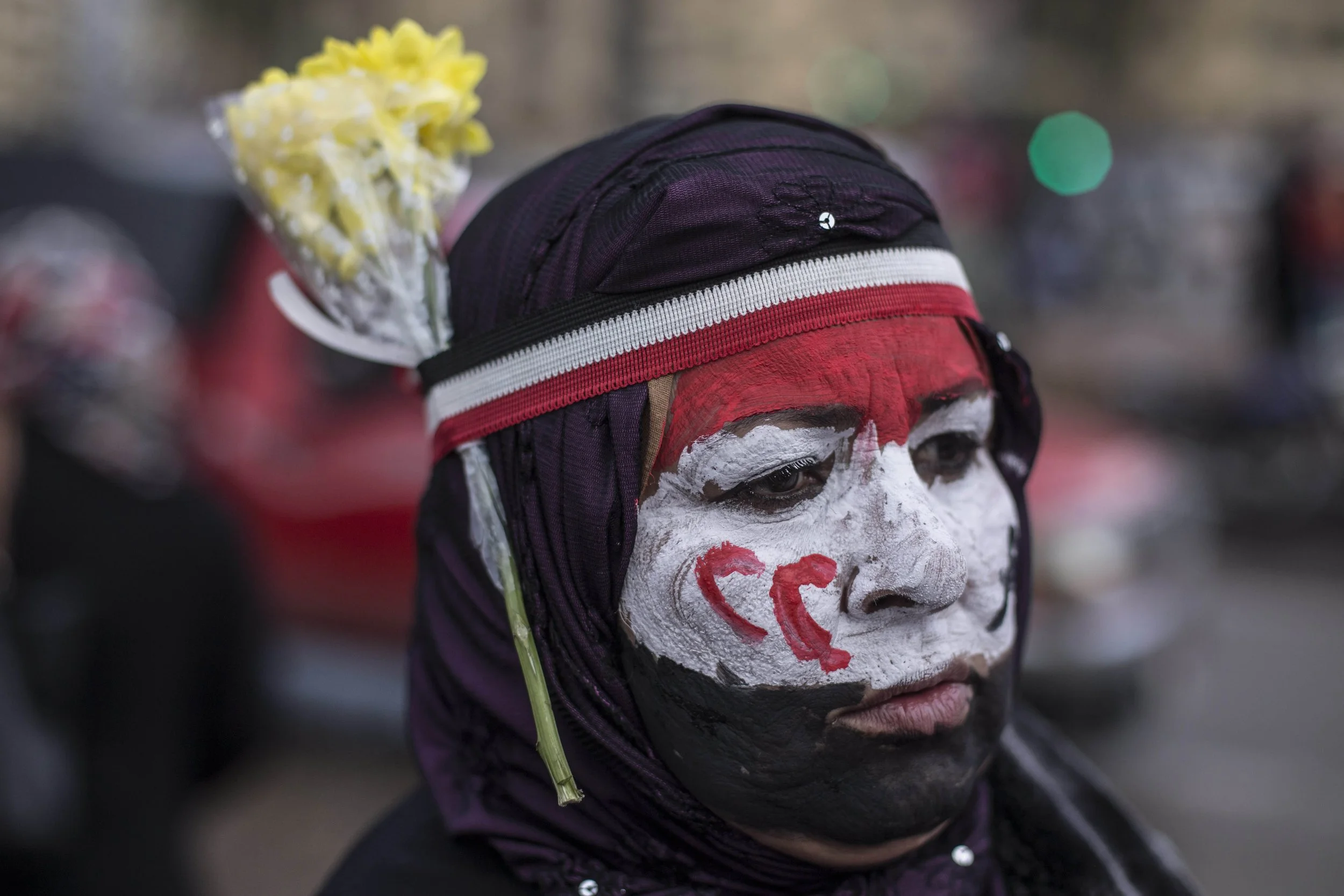 A supporter of President Sisi painted the flag of Egypt and the first initials of President Sisi on her face in Tahrir Square on January 25.