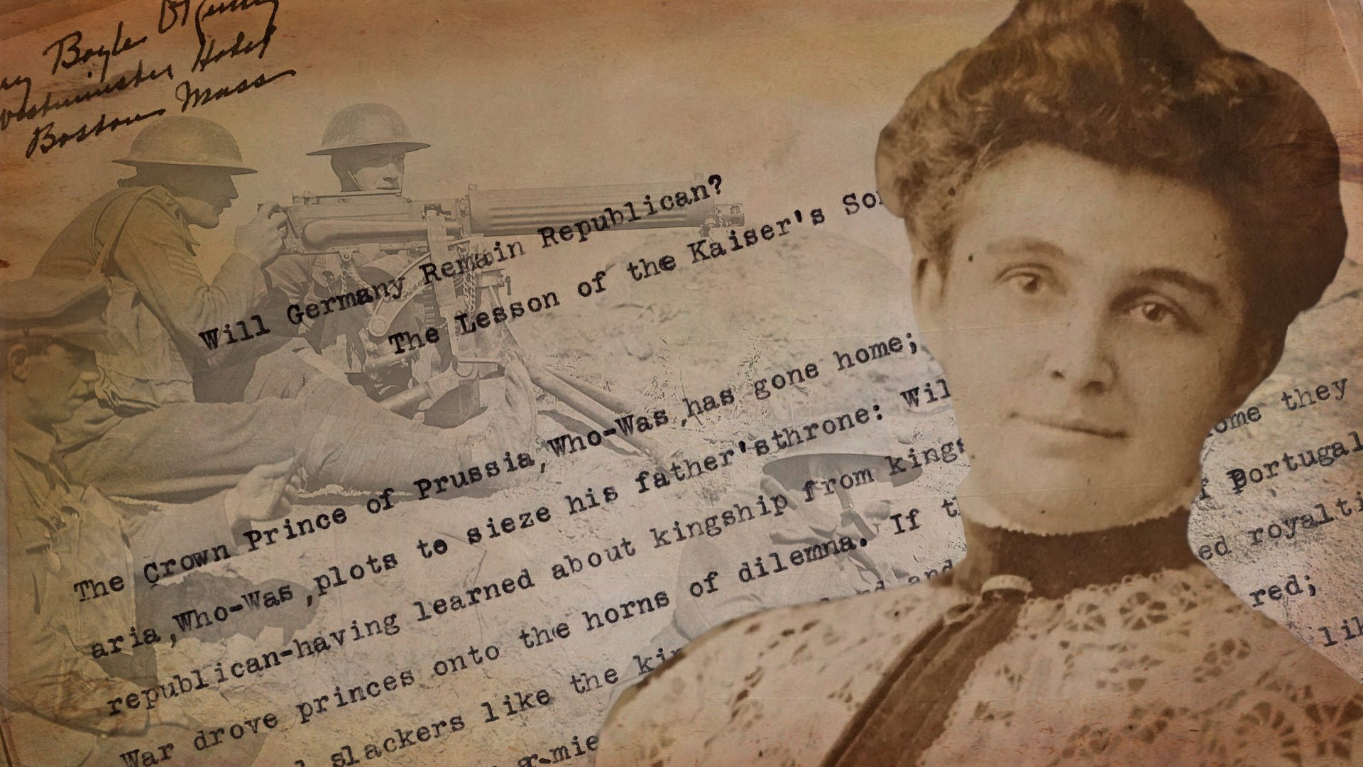 BOSTON – At a time when women in the U.S. were still winning their right to vote, Mary Boyle O’Reilly was on the frontlines of World War One, as a fearless foreign correspondent writing for Harper’s Magazine and The Boston Globe. O’Reilly provided riveting, eye-witness accounts of the war and sided particularly with displaced civilians no matter which side of the trench lines they were on. Her work stood out for its criticism of the jingoistic coverage by British press that too often gave a false impression of the realities of the war and the horrors committed by both sides.