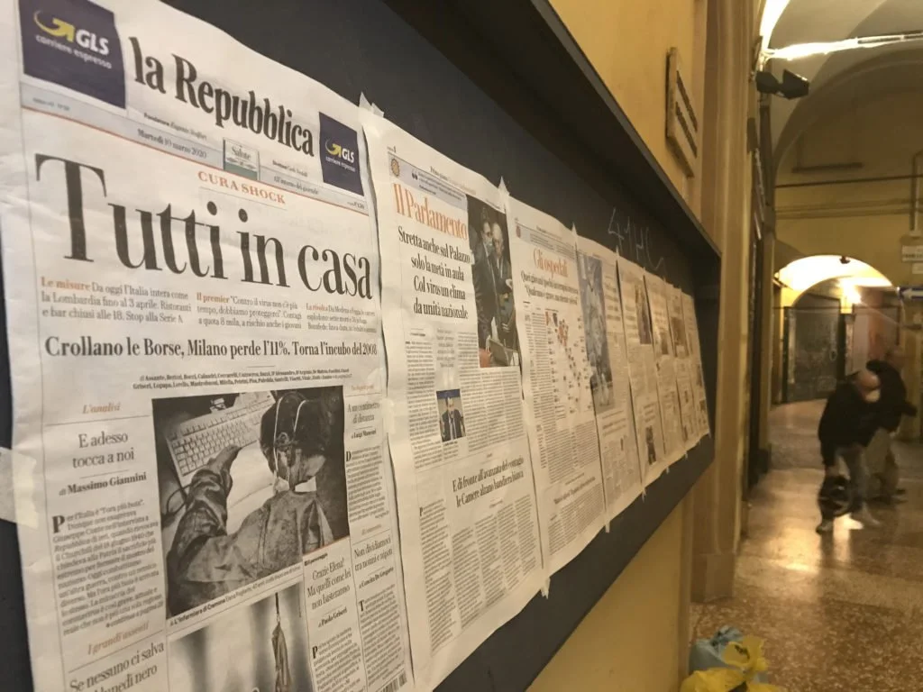 The headline for the Italian paper La Repubblica on March 10, 2020: “Everybody at home.” (Photo by Pietro Luca Cassarino/Flickr)