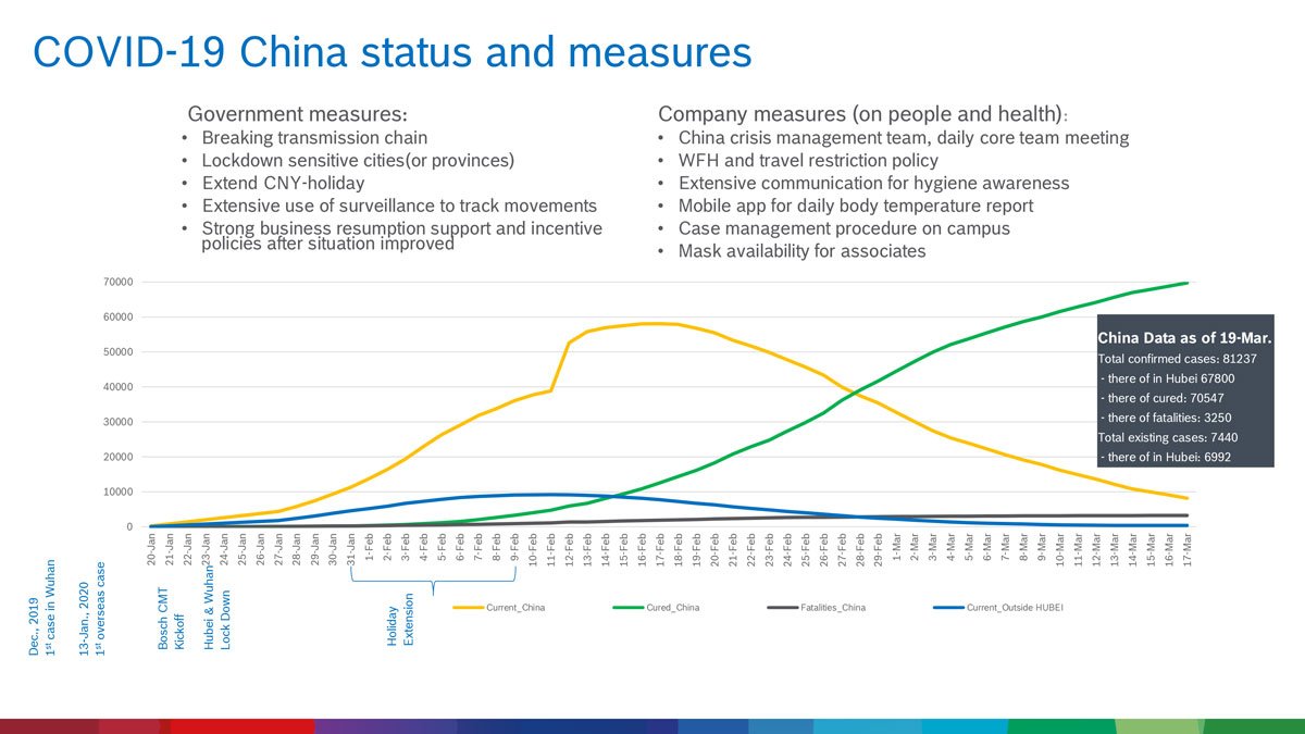 The COVID-19’s pandemic evolution in China along Bosch’s timeline. (Graphic by Bosch China)