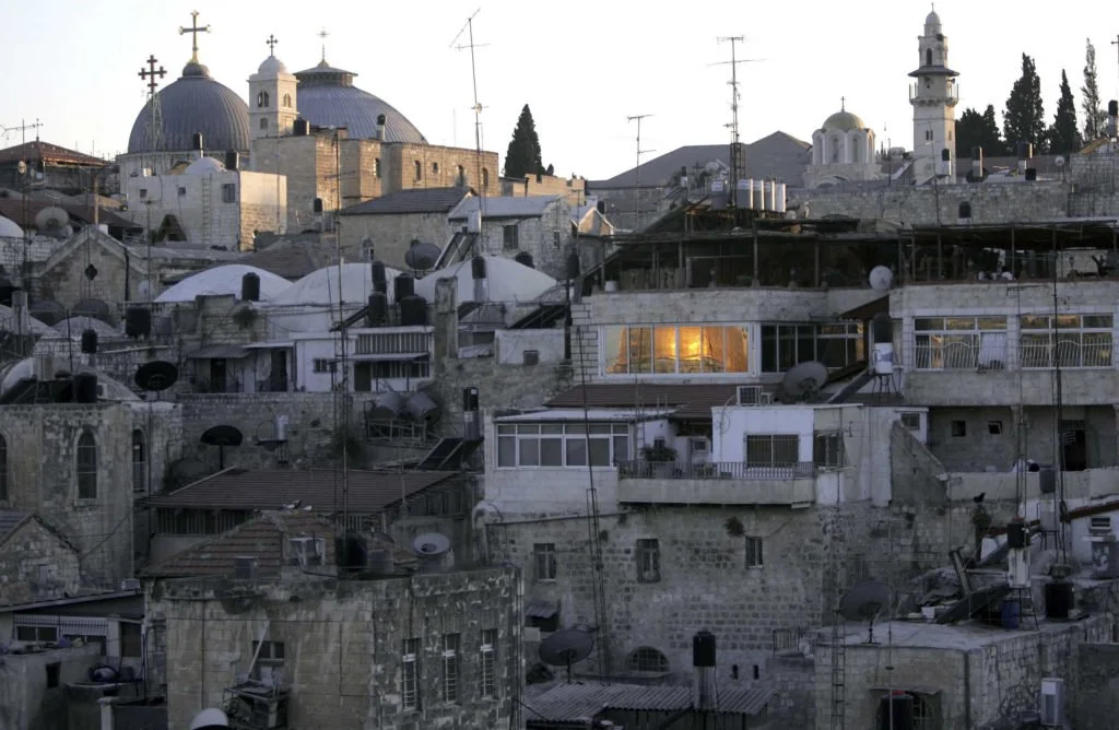 The Al-Aqsa Mosque is reflected in the window of an Arab home in the Christian quarter in the Old City of Jerusalem. (Photo by Heidi Levine/GroundTruth)