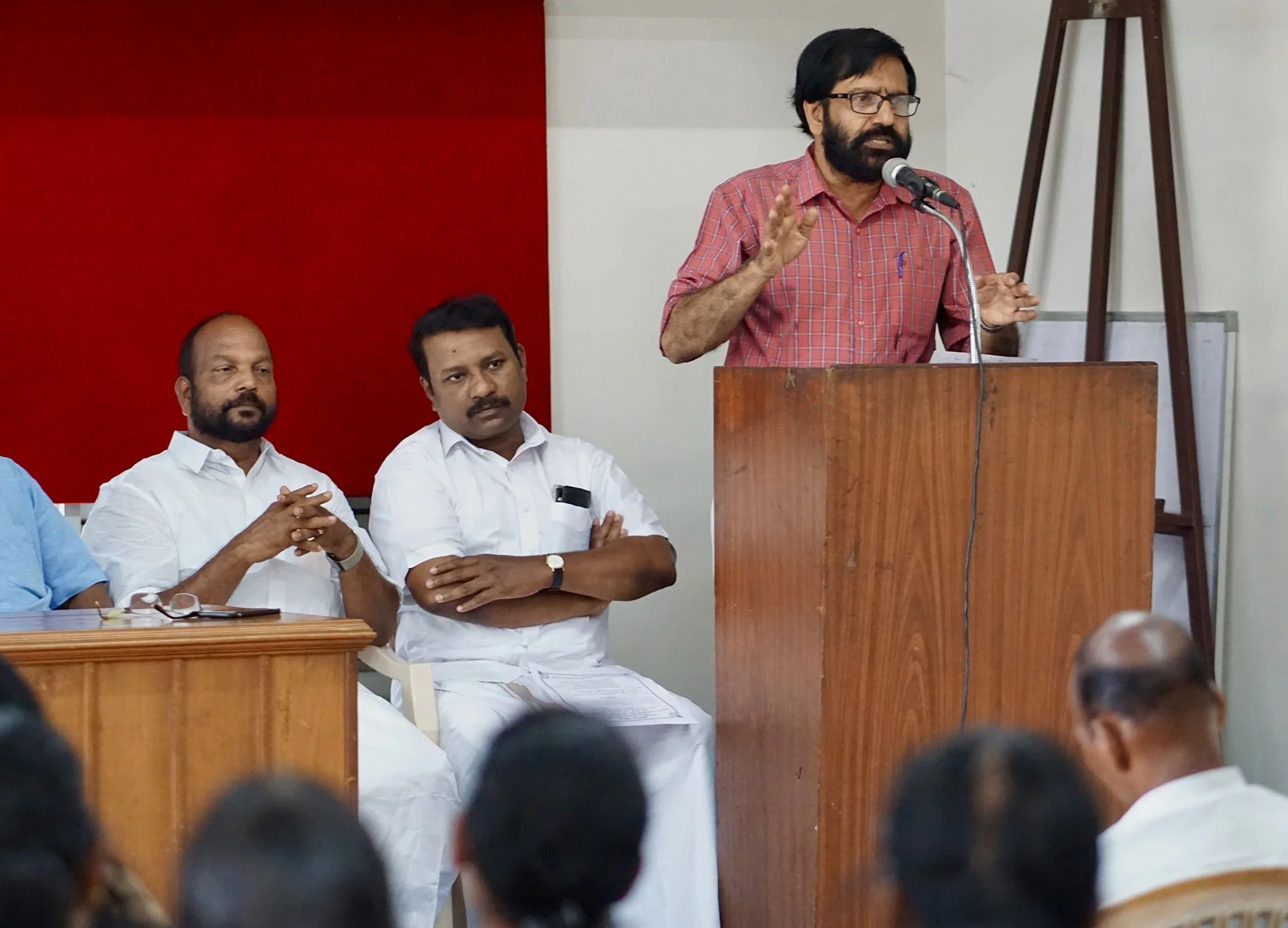 K.P. Ramanunni gives a speech honoring a Dalit leader in Kozhikode. (Photo by Krishna Narayanamurti)