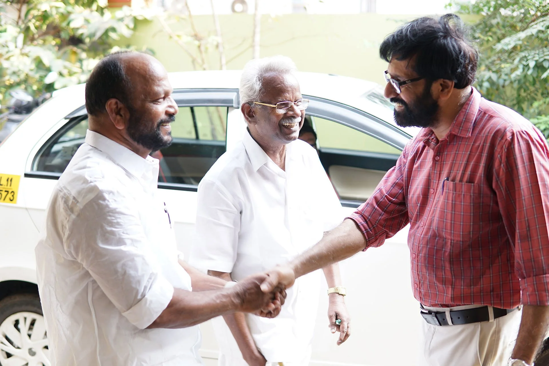 K.P. Ramanunni meets with Dalit leaders in Kozhikode. (Photo by Krishna Narayanamurti)