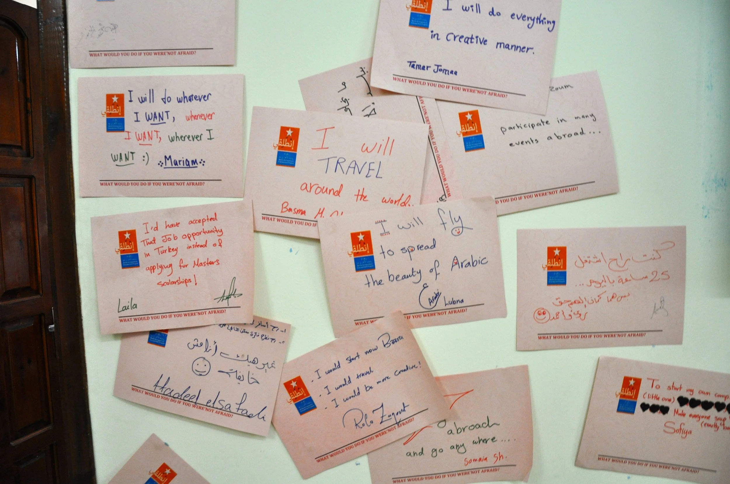 Tucked away in a building near the Gaza Strip’s scarred but glistening Mediterranean coastline is a wall of dreams. On it, dozens of young entrepreneurs have posted their answers to an especially difficult question: “What would you do if you weren’t afraid?”