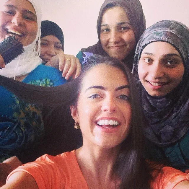 Selfie taken last summer in southern Lebanon while reporting a story on Syrian refugees. These women are training to become hairdressers as a means to support themselves.