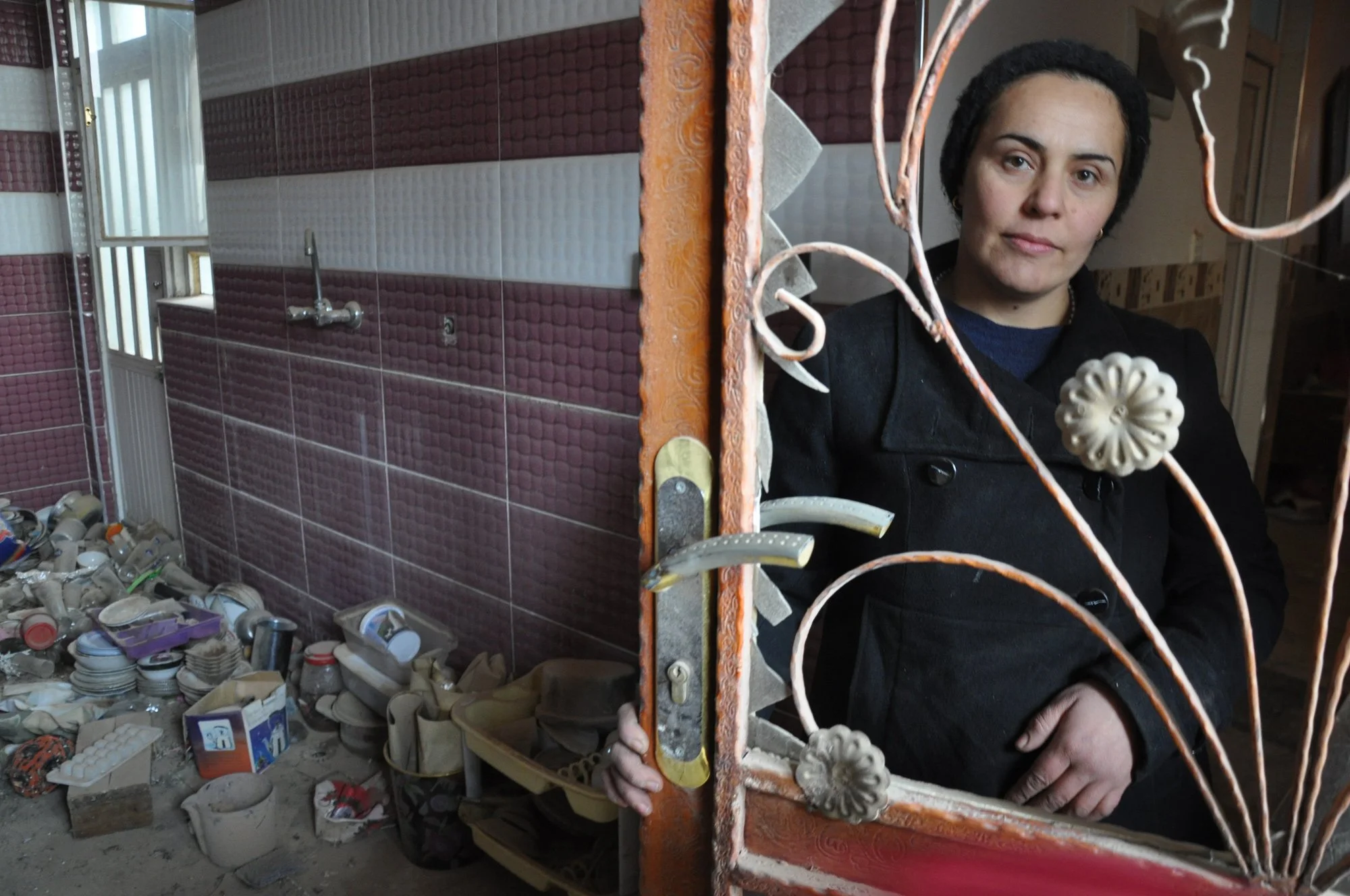 Maha Gebo returns to her home after two and a half years to assess the damage. (Photo by Lauren Bohn/GroundTruth)