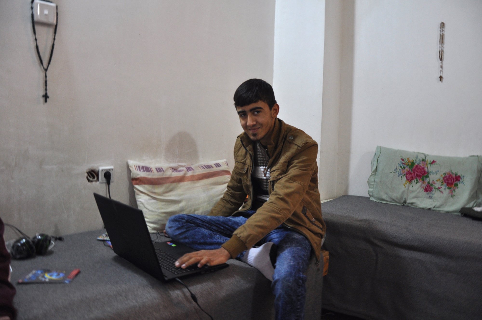 Ismael Al Kanon plays computer games in his room at a Christian charity in Erbil, the capital of Iraq’s semiautonomous Kurdish region where many Iraqi Christians have fled. (Photo by Lauren Bohn/GroundTruth)
