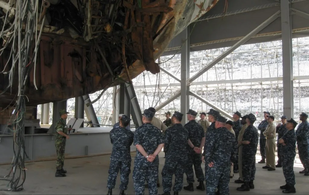 Sailors from USS George Washington (CVN 73) and Carrier Task Force (CTF) 70 along with South Korean service members attend a debriefing on the wreckage of South Korea’s Cheonan ship, which was allegedly destroyed by a North Korean torpedo in 2010, killing 46 people. (Official U.S. Navy photo)