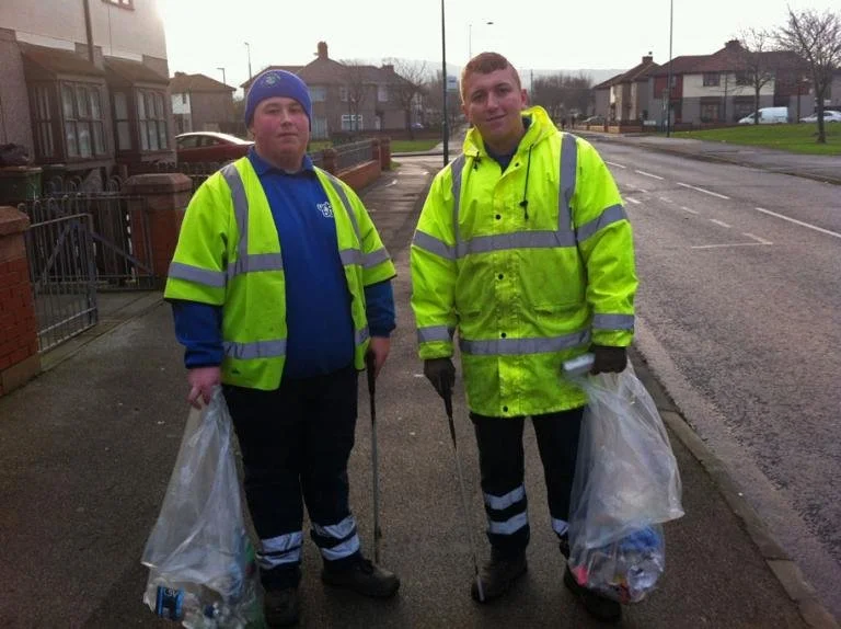 James Bradley and Jonathan Hudson cleaning the streets of Grangetown, Middlesbrough. Council workers such as these cleaners are called “Clean and Green” teams.