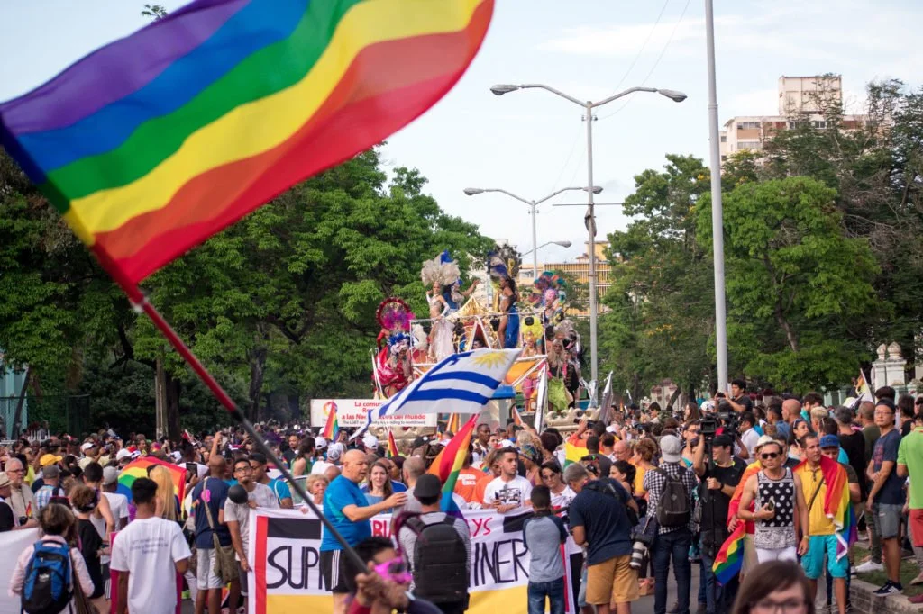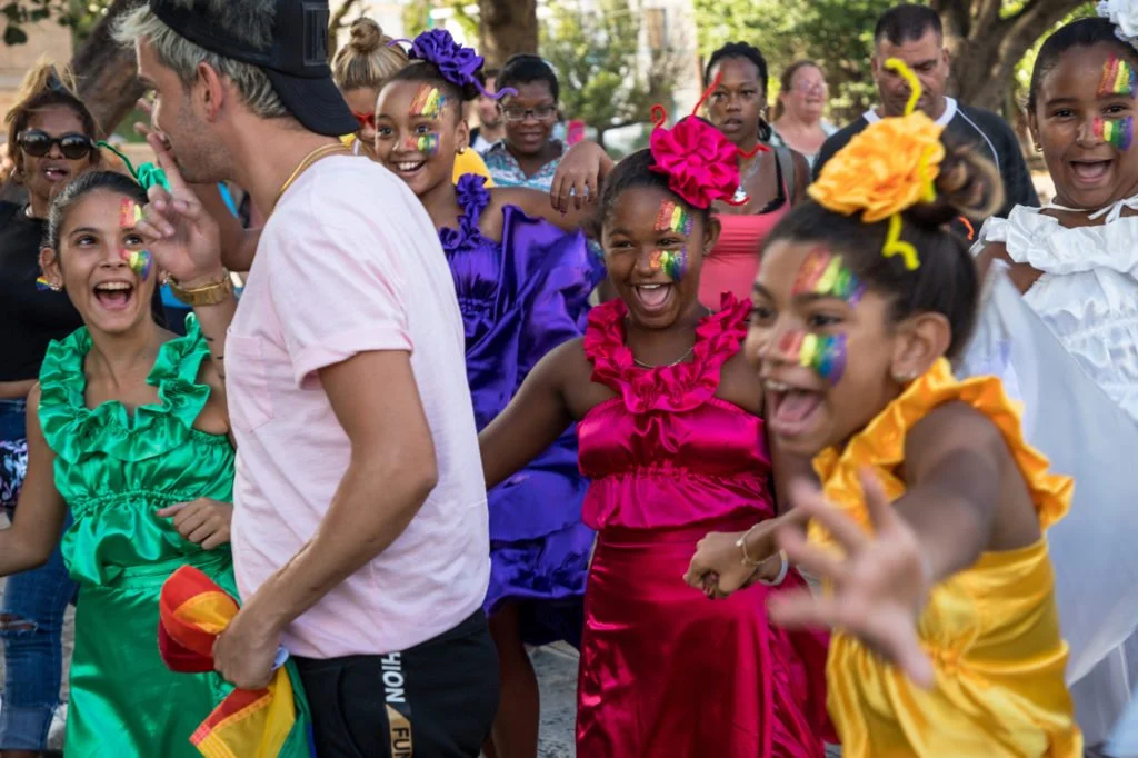 HAVANA – On a hot and humid day in downtown Havana, the streets are filled with rainbows. One man wears a rainbow flag as a cape, another is covered in rainbow body paint. Young girls run through the crowd in different colored dresses, creating a swirling rainbow with their antics.