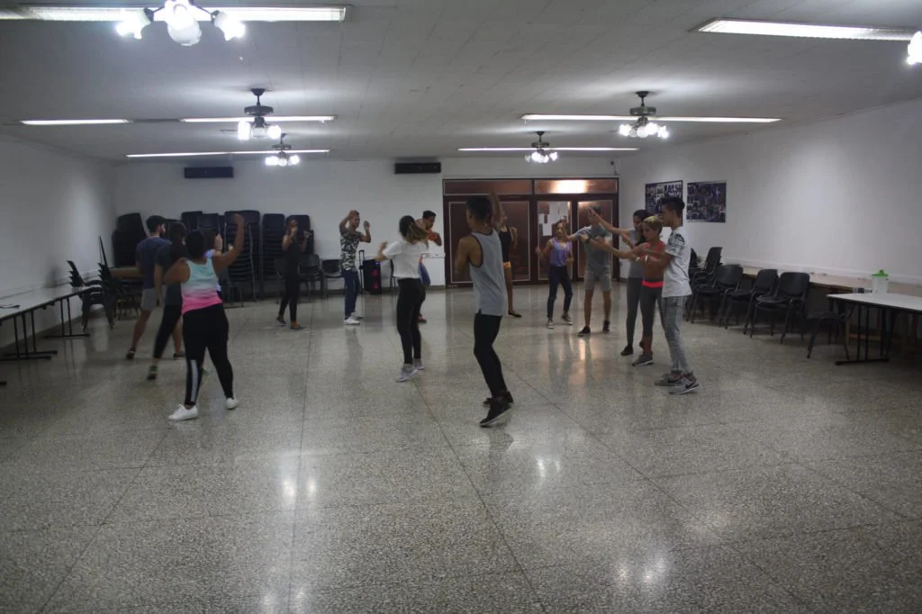 Abel Hernandez Eskenazi, front right, dances with other members of the youth organization at their weekly dance group May 14. Eskenazi, 17, has been leading religious services since his Bar Mitzvah four years ago. (Photo by Riley Robinson/The GroundTruth Project)